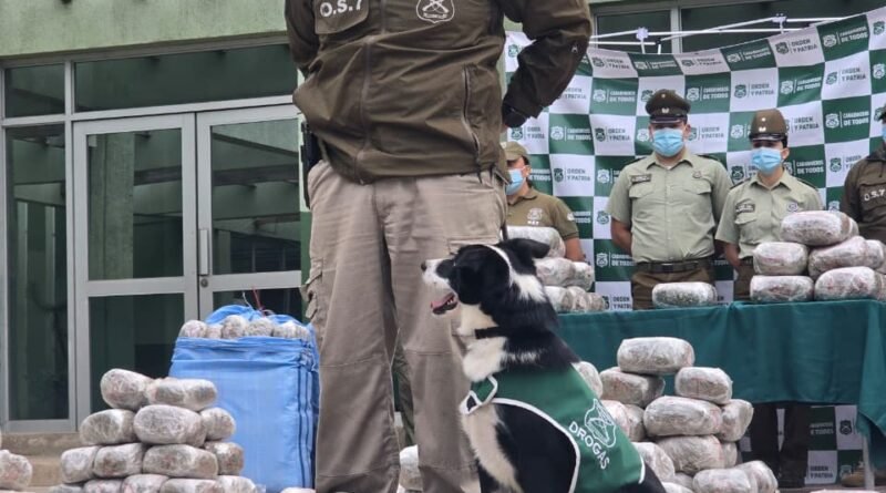 Esta vez, se trató de 559 kilos de marihuana procesada, cuyo tráfico fue intervenido por Spot, un border collie perteneciente al OS7 Coquimbo y quien, por segunda vez en tres semanas, evitó a través de su olfato, el ingreso de la sustancia a la región.